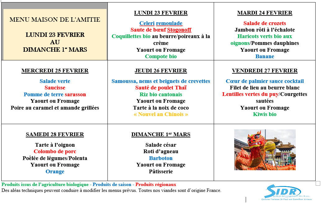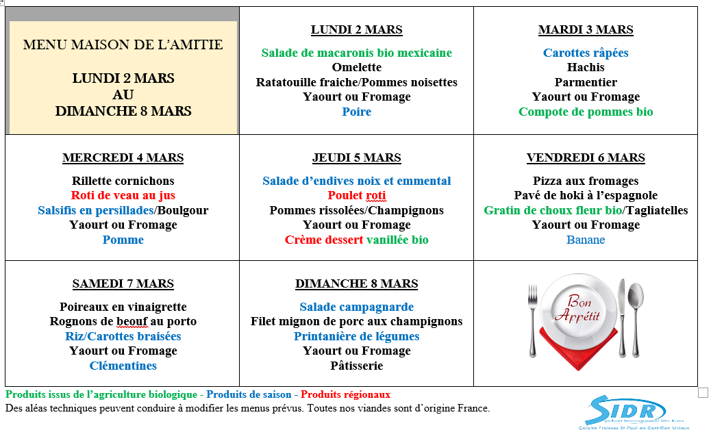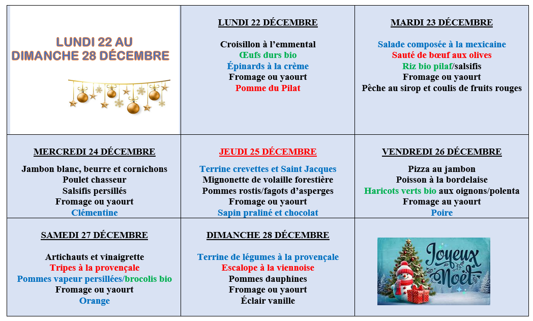Le régime alimentaire peut être pris en compte pour la personne diabétique ou ayant un régime pauvre en graisse sur prescription médicale. Elaboré sous le contrôle d’une diététicienne